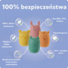 Te zwierzątka są miękkie, poręczne i idealne do małych rączek – sprawdzają się super przy AZS, bo łatwo je wyparzyć i utrzymać w czystości.