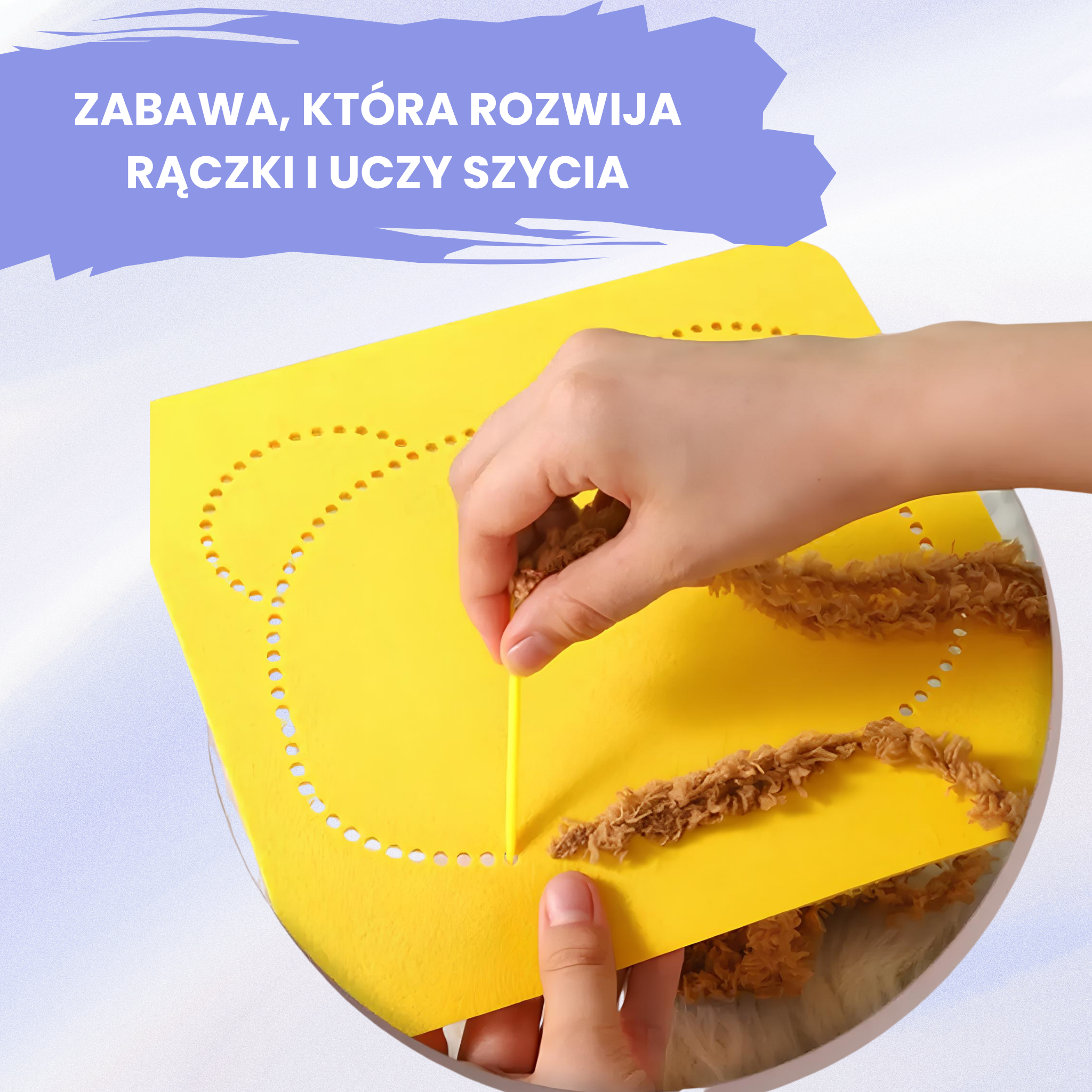 Oczywiście! Igły są plastikowe i mają zaokrąglone końce, a filcowe elementy – miękkie i bezpieczne dla skóry.